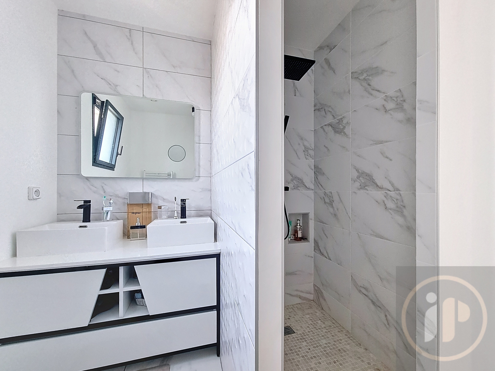 Elle se compose de 4 chambres, dont une suite parentale, ainsi que de 3 salles d’eau, d'une buanderie. Les espaces de vie, spacieux et ouverts, sont baignés de lumière naturelle.
